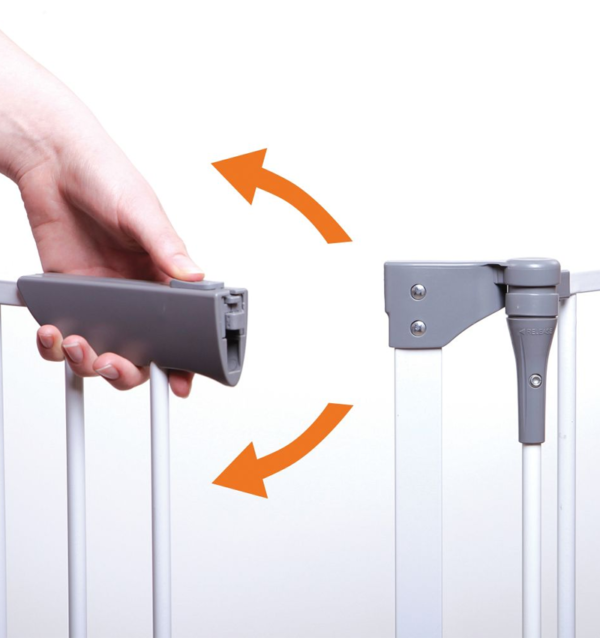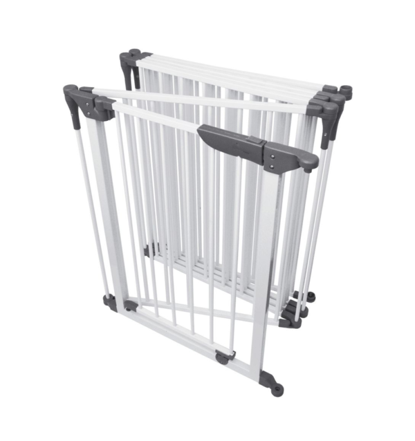 • One of the six panels of this gate is equipped with a Smart Stay-Open door.