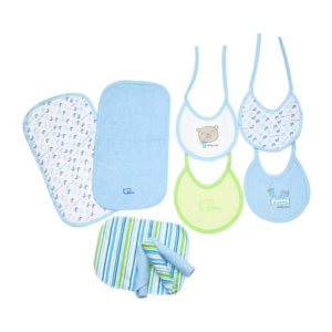 It includes 4 Double View Bibs, 2 Double View Repeaters, 4 Facial Wipes wrapped up in gift packaging.