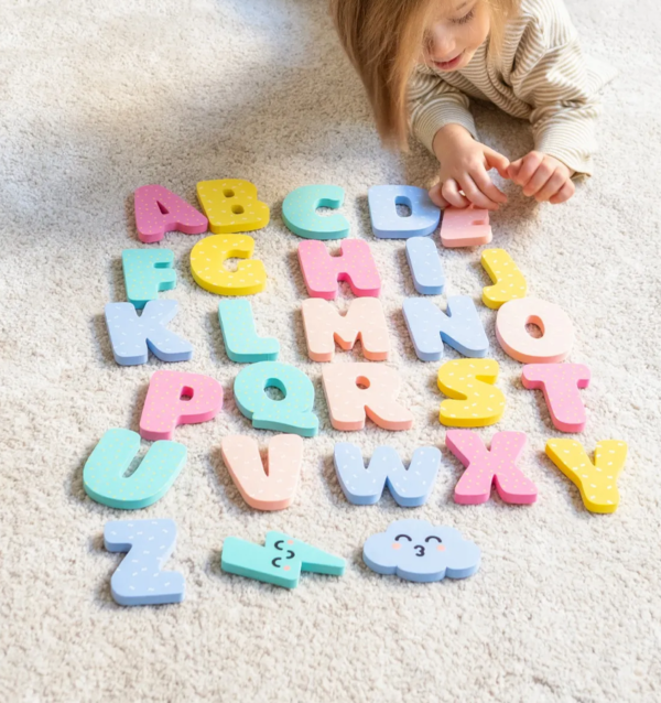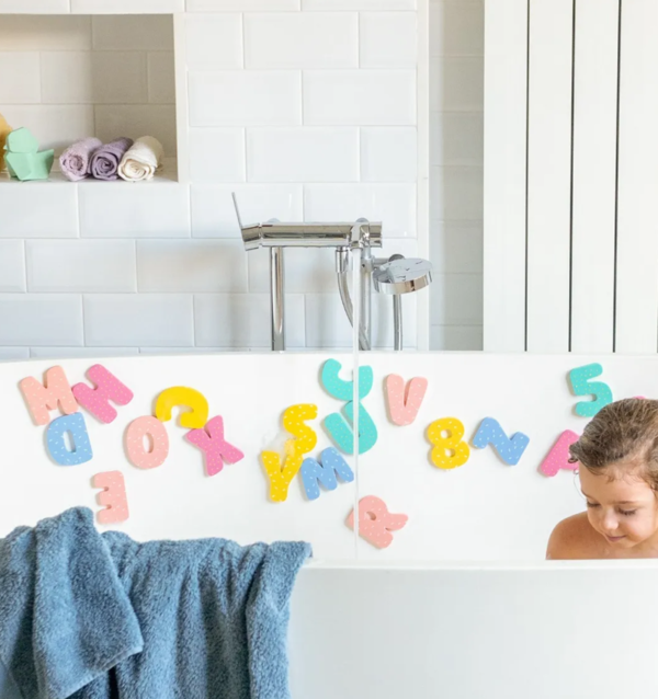 The colorful EVA foam pieces float on water, turning every bath into a playful opportunity to fish for letters.
