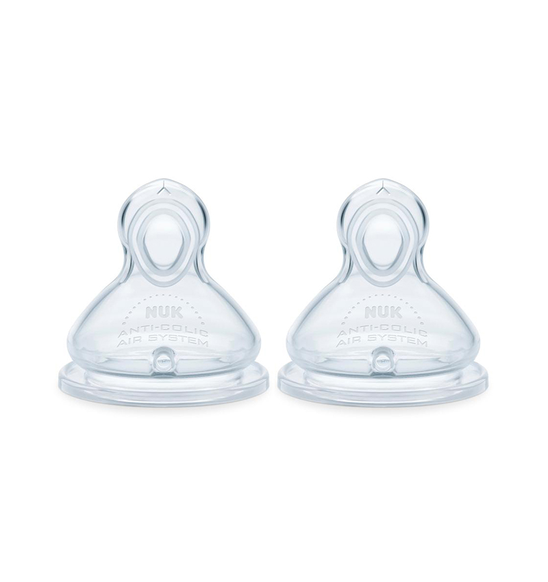 The special NUK Shape is modelled on a mother’s nipple as she breastfeeds. It leaves your baby’s tongue and jaw enough room for natural sucking movements. With its new soft zone, the silicone baglet is a better fit against the roof of your baby’s mouth – giving a natural feeling while drinking. The improved Anti-Colic Air System creates a natural flow so that your baby can drink in a relaxed way without swallowing air.