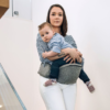 Its main feature is that it absorbs the weight of your child and reduces the direct strain on your body. It redistributes the weight of the child from the upper back, shoulders and arms evenly around the waist thus reducing the pressure on the spine of the adult while carrying the child. The seat is designed as a solid shelf on which the child can sit safely and comfortably supporting the child’s growing weight from the bottom.