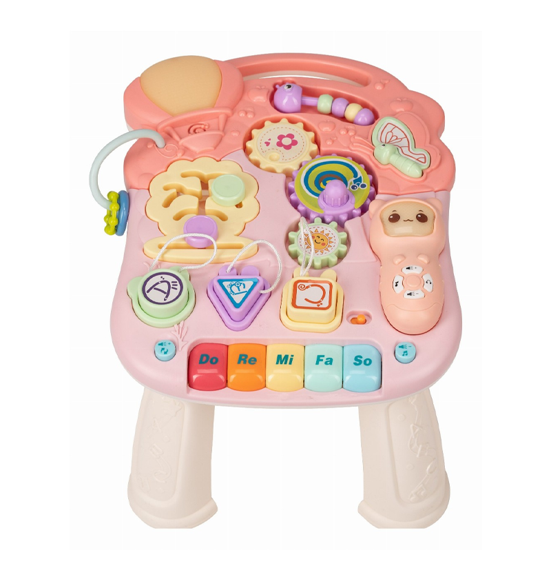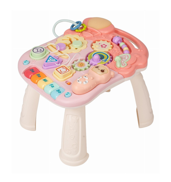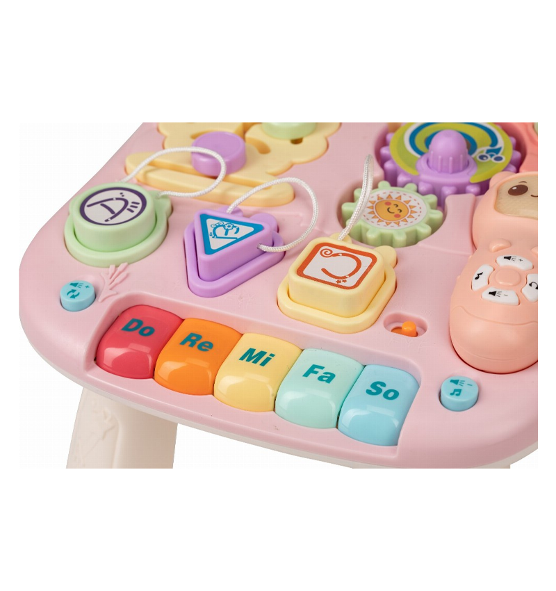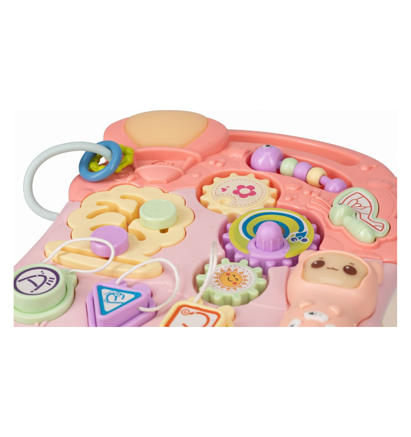 • Aimed to support gross motor skills (walking), fine motor skills (play panel), cognitive and auditory development.