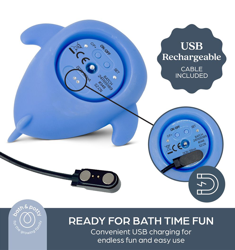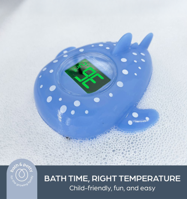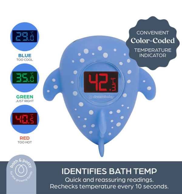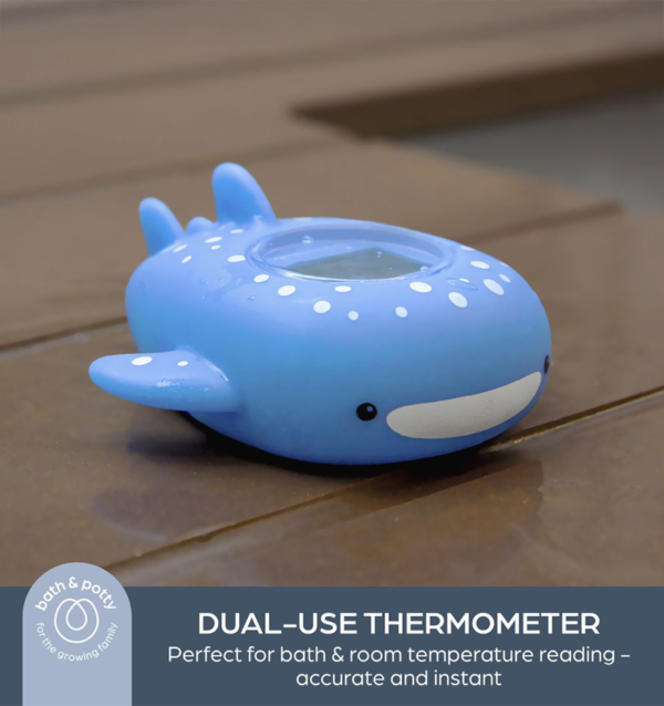 The Dreambaby Bath Thermometer – Whale Shark is a fun and functional digital thermometer that helps parents monitor both bath water and room temperatures with ease. Shaped like a playful whale shark, it doubles as a floating bath toy while delivering accurate readings every 10 seconds and uses colour-coded lights to indicate whether temperatures are too hot, too cold, or just right. USB rechargeable and tested to safety standards, it’s a practical addition to safer and more enjoyable bath time moments.