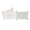 The Nattou bed bumper with Mila, Lana, and Zoe creates a cozy and safe sleeping space for your baby. The soft bumper protects your baby from the hard edges of the crib. It features embroidered animals and can be paired with a matching duvet cover for a fresh look.