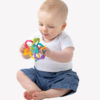 Bend me this way and twist me that way! The Bend and twist ball is perfect for little, exploratory fingers. It has chewy teething paddles that will delight any teething baby! Its bold colors and rattling sounds will stimulate the baby’s visual perception and auditory development. This bending, twisting ball has 3 added, small rings that rattle and are perfect for developing fine motor skills.