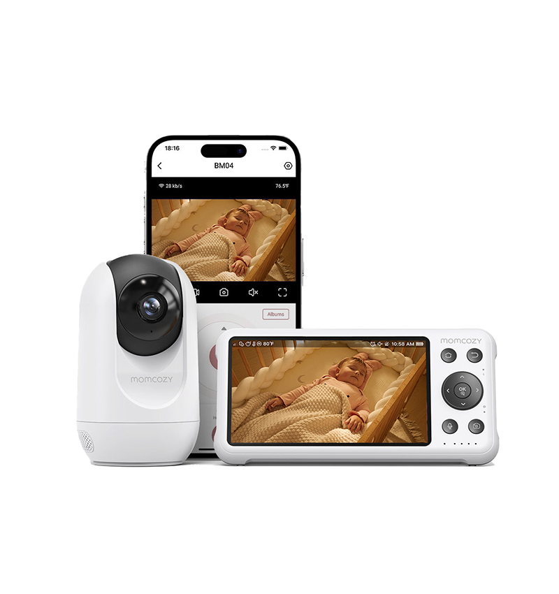 The Momcozy 5‑Inch Dual‑Mode Smart Baby Monitor (BM04) offers flexible, secure monitoring with 1080p HD video, motion and crying alerts, two-way talk, and recording features. It supports both Wi‑Fi and non‑Wi‑Fi use, allows up to 4 cameras, shared family access, and customizable notifications to keep your baby’s safety and comfort always in view.