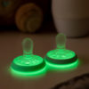 Our orthodontic soothers feature an oval, reverse ortho baglet that is vented, compressing more easily than traditional, air-filled baglets, reducing pressure on the baby’s developing teeth and gums.  The symmetrical, silicone baglet is fully reversible and has no ‘wrong’ side-up so it will always be placed correctly in your baby’s mouth.
