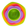 Patterned holes on the base allow water to drain from the cup and soft edges help soothes babies sore gums.