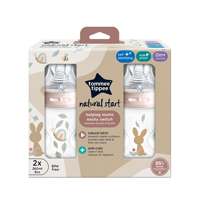 The natural start bottle is one of two options in the self sterilising tommee tippee bottle range that’s designed to support you and your little one.