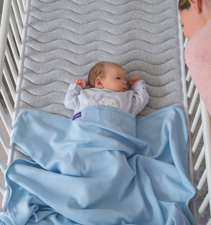 The ClevaMama® Waffle Weave Cotton Blanket is a must-have bedding item for all parents.
