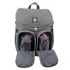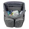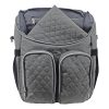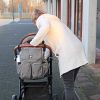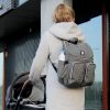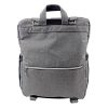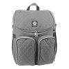 The stylish and practical diaper bag. Grey mélange fabric with silver-colored zippers. To be carried as a shoulder, crossover, or handbag.