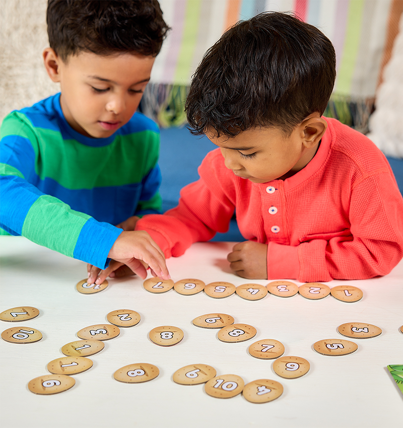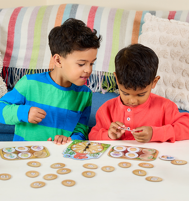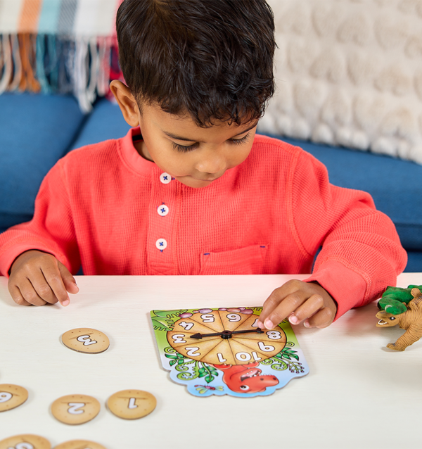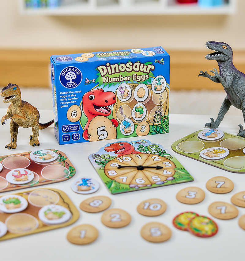 This captivating early number game invites children to spin the spinner and match eggs to hatch adorable baby dinosaurs, enhancing their counting skills and number recognition. Players race to hatch the most dinosaurs while staying alert for the T-Rex wild card, which adds a twist by requiring them to return an egg.