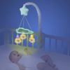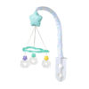 The Playgro musical mobile consists of a star at the top, which can play 30 minutes of sweet music. Below is a large cloud with three appendages shaped like clouds that can light up and change colour.