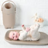 The Nattou Dropy Nappy Bin seals in odors with its special closure system and is easy to use with one hand. It works with any plastic bag and can be repurposed as a bathroom bin once your child grows.