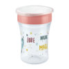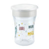 The NUK Magic Cup allows children to drink in the same way as adults do. The 360° drinking rim encourages and allows drinking from any side, without any handles much like a normal drinking cup. The “magical” difference is that the cup cannot leak. A silicone disc seals the lid from the inside. To drink a child has to suck on the rim to open the seal.