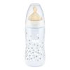 The NUK First Choice bottle features the original NUK orthodontic shaped teat. The teat is soft and adapts perfectly to the baby’s mouth. It also has an extra wide lip support which simulates breast feeding. The NUK Anti-Colic Air System minimises infant colic caused by harmful air swallowing.