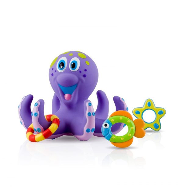 Give your little one endless fun at bath time with this floating octopus toy that comes with hoops!