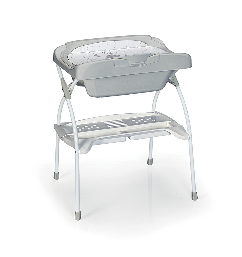 The foldable baby bath and nappy changing table boasts an innovative design, featuring an ergonomic Gaia tray with a non-slip coating for added safety.