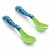 • The spoon and fork shapes are designed to safely assist self-feeding and teach good eating habits.