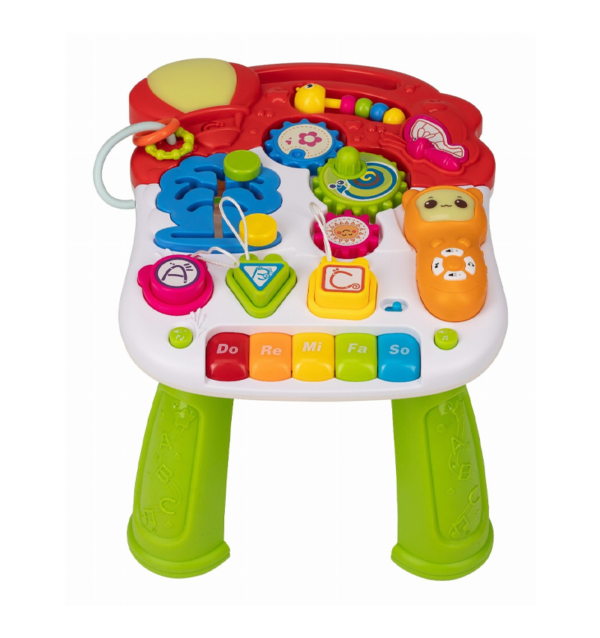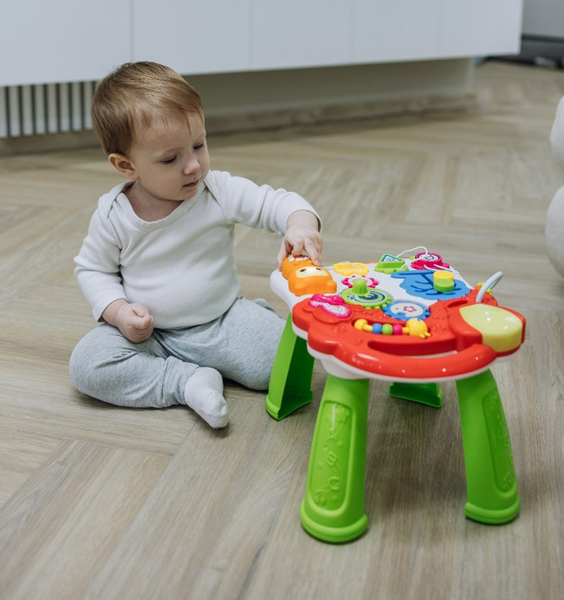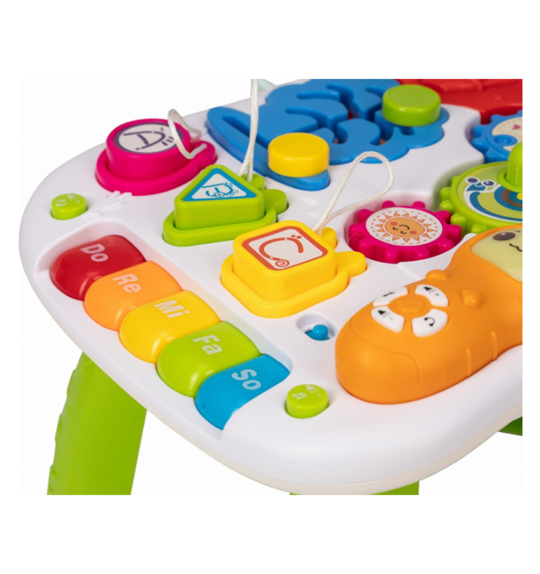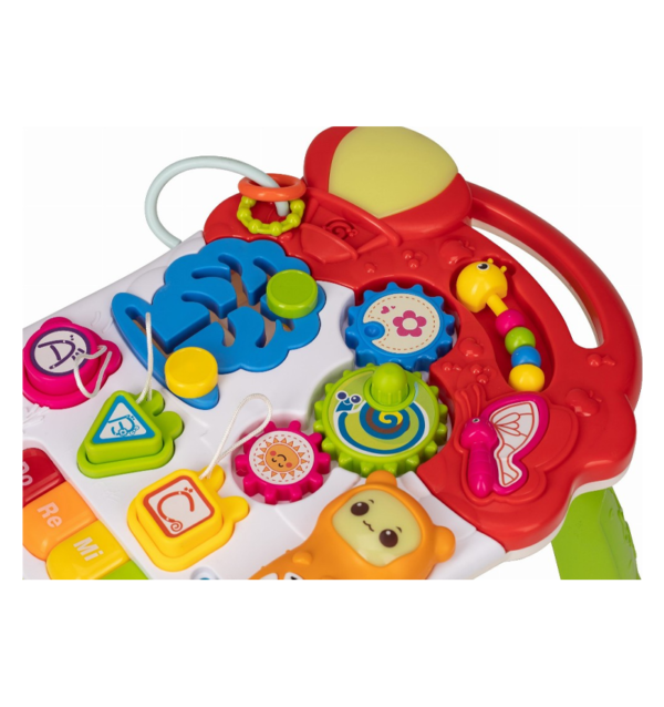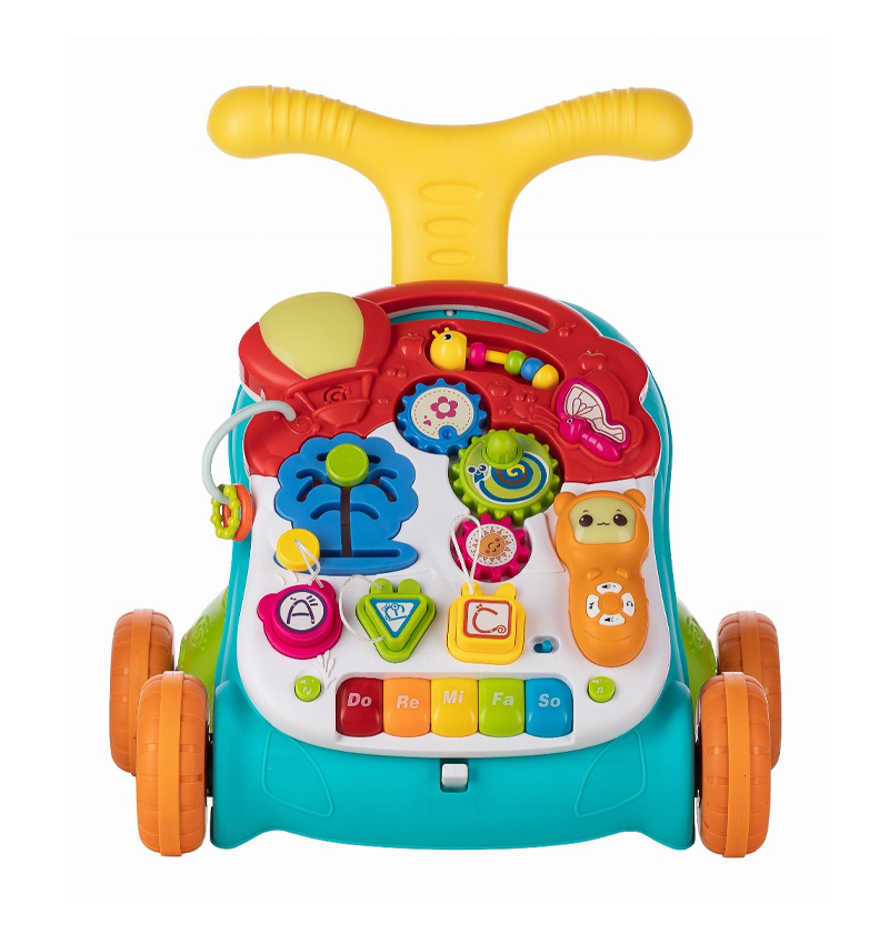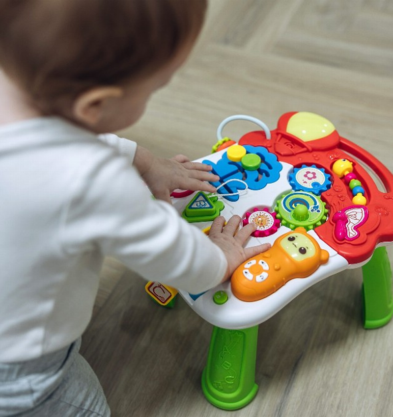 • Aimed to support gross motor skills (walking), fine motor skills (play panel), cognitive and auditory development.