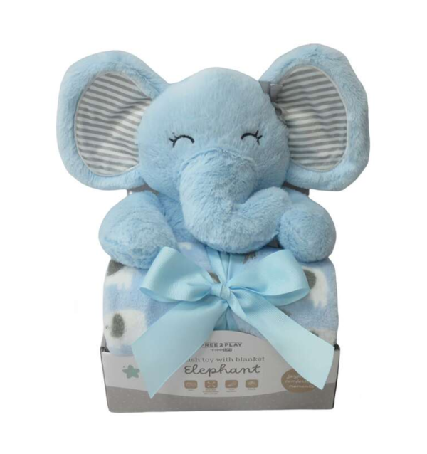 Free2play Plush Toy with Blanket – Blue Elephant