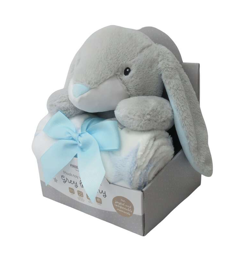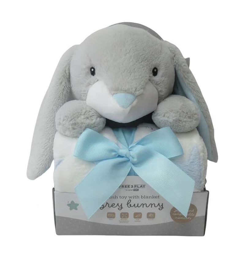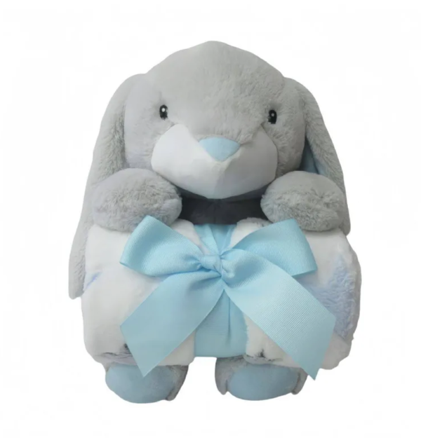 This plush gift Set includes a plush bunny (24 cm) integrated into a soft fleece blanket (90 × 75 cm). Extremely soft and gentle to the touch, it’s perfect for cuddling, sleeping, and outings. Comes in an elegant gift box and makes an ideal present for newborns.