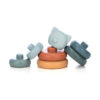 • The set contains 7 different silicone building blocks that can be put on top of each other. Each building block is of different colour and size. For easier stacking and more fun, the building blocks are convex. A teddy bear head is put on top of the assembled tower, which makes the tower particularly interesting and attractive for the child.