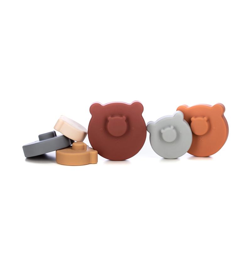 • The set contains 7 different silicone building blocks that can be stacked on top of each other. Each building block is of different colour and size. For easier stacking and more fun, the building blocks are convex and rounded. A teddy bear head is put on top of the assembled tower, which makes the tower very interesting and attractive for the child.
