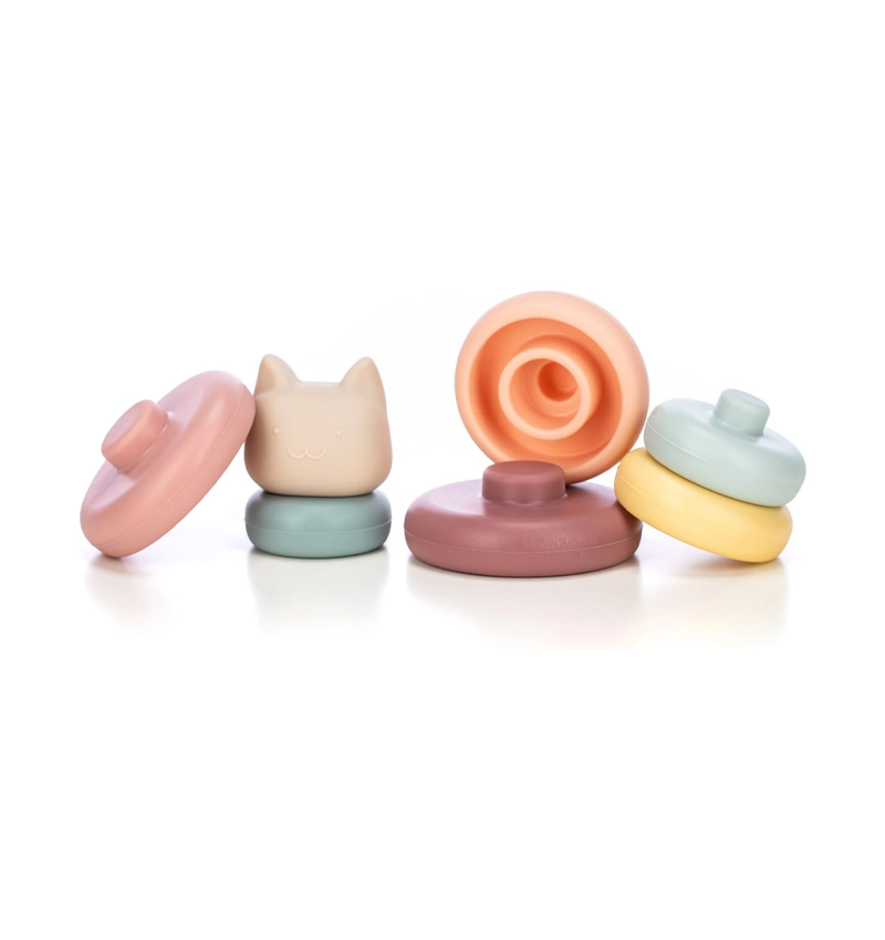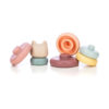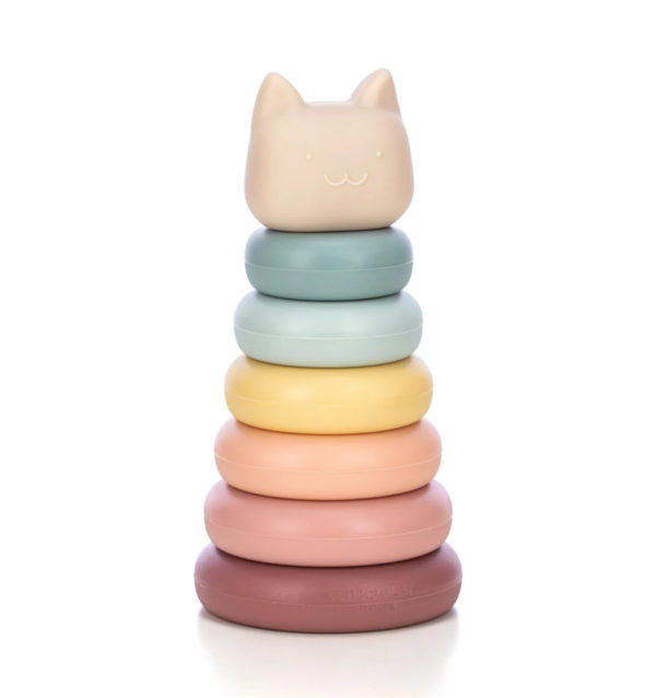 • The set contains 7 different silicone building blocks that can be put on top of each other. Each building block is of different colour and size. For easier stacking and more fun, the building blocks are convex. A kitty head is put on top of the assembled tower, which makes the tower particularly interesting and attractive for the child.