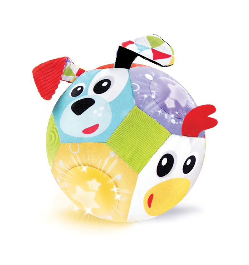 Baby is going to ‘have a ball,’ crawling after this soft Lights ‘N’ Music Friends ball with animal-themed faces and twinkling stars. Your little ball pro may soon be on their way to the big leagues.”