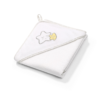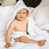 The hooded FROTTE bath cover can be used on the baby’s first bath.
