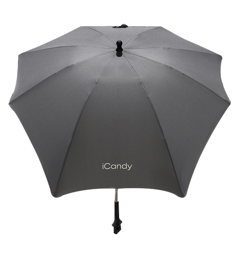 The iCandy Peach Parasol features a flexible arm enabling easy positioning, a quick release button and is compact enough to fit in the pushchairs shopping basket.