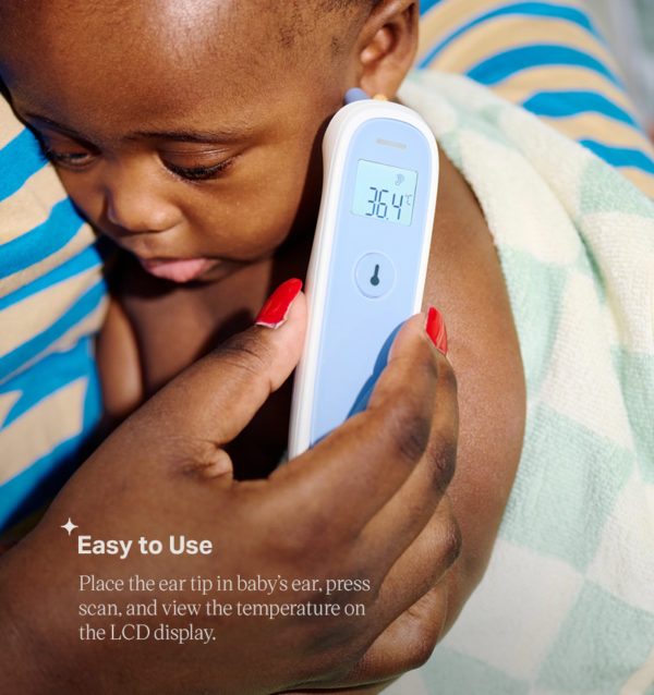 • Easy to use: Suitable for use from 3m+, simply place the small ear tip in baby’s ear and press the scan button, and the temperature reading will be shown on the easy to read LCD display