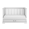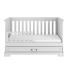• A protective rail protecting the child against falling out after converting the cot to a bed is included. The rail can be installed on the right or left side of the bed