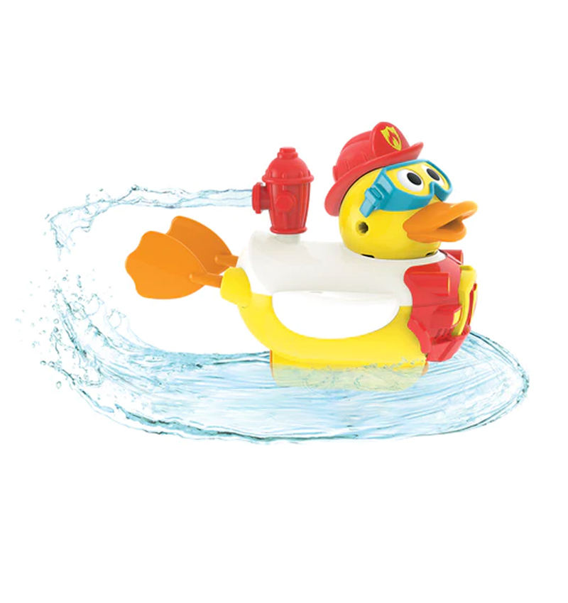 This exciting, battery-operated Firefighter duck speeds through the tub while firing water out of its hydrant, turning bath time into an action-packed adventure. Its 15 accessories can turn it into the town hero, a silly firefighter with flames blasting out of its ears, or anything your child’s imagination can come up with.