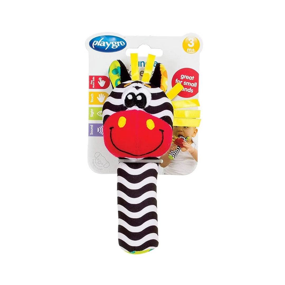 The perfect size for little hands, this soft fabric toy makes a squeak sound when squeezed. Features bold patterns for visual stimulation and different fabrics for developing tactile perception. The silky ribbons are perfect for baby to practise their fine motor skills.
