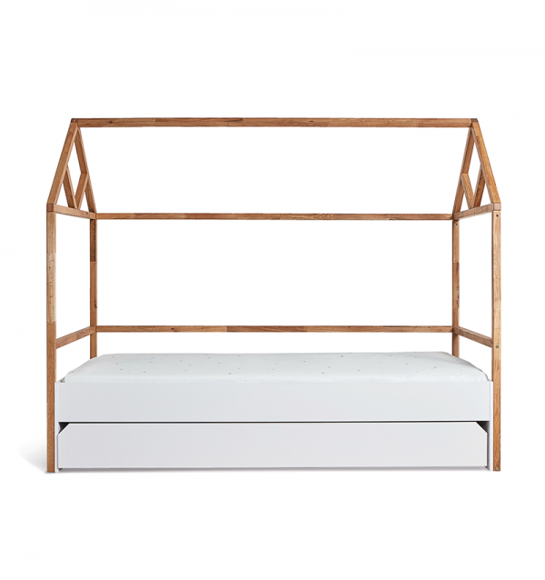 • A beautiful ornamental and functional feature of the bed is the house-shaped oak frame, where you can hang fairy lights, organisers or fabrics.