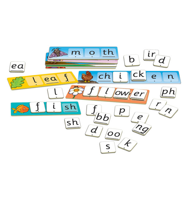 The game is played by building a variety of familiar and more advanced words, from ‘Moth’ to ‘Balloon’, with the help of colorful illustrations to identify words. Parents can use the sound and blend cards to encourage children to make the individual sounds as well as say the entire word aloud. There are 18 words included in the game.