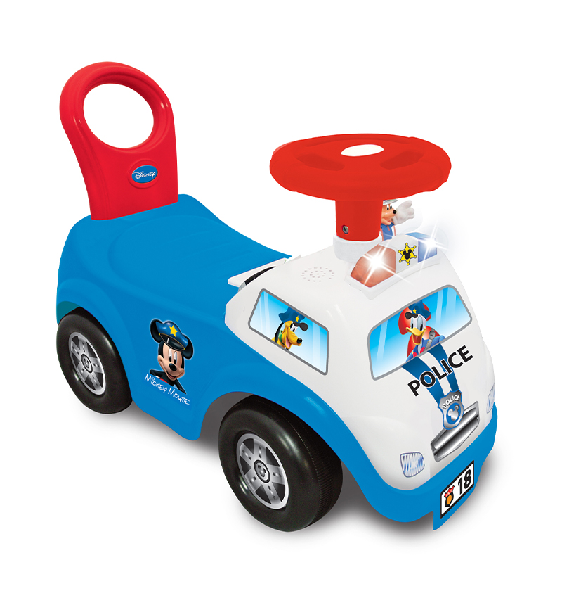 The dashboard features many different sounds and lights depending on which button is pressed. Press the Key Button to fire up the vehicle, press the other buttons to hear various phrases from Mickey, and play different notes on the mini keyboard.