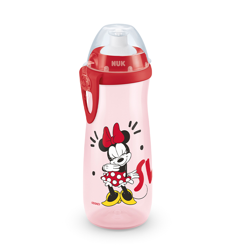 The NUK Sports Cup holds 450ml making it a perfect companion for sport or play. The push-pull spout makes it easy for the child to open and close. The silicone spout is durable and hygienic, it is also dishwasher safe. By using the practical clip, the cup can be attached to a rucksack or bag so that active children can have both hands free while playing.