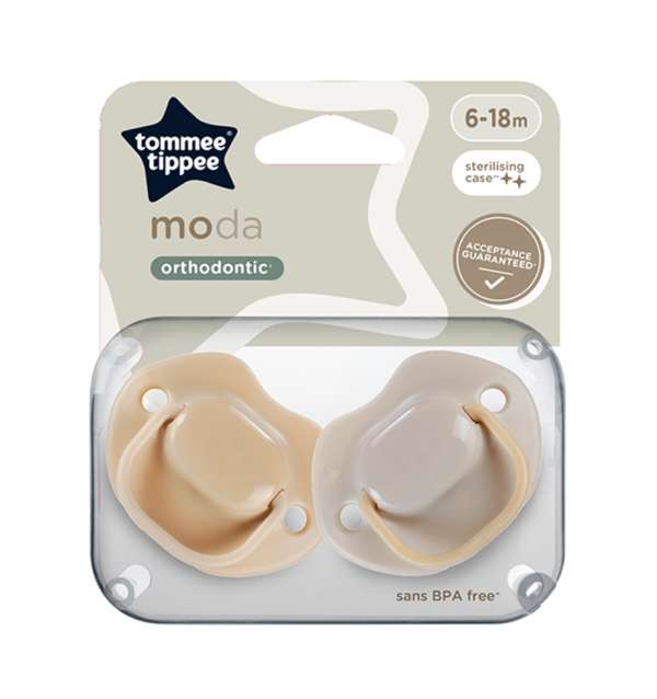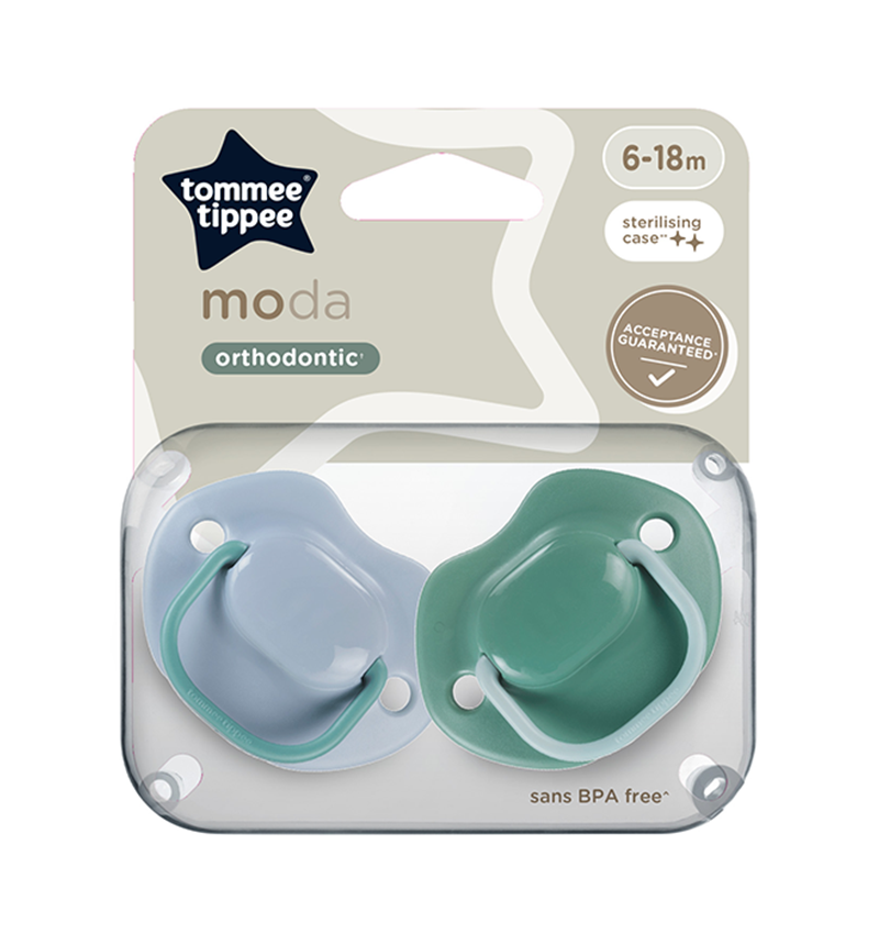 Symmetrical orthodontic shaped baglet on our soothers has been designed to improve balance, making it easier for babies to hold the soothers in their mouth whilst supporting natural oral development. The teat like shape on the MODA Soother is more like a bottle teat for a more familiar feeling for a baby.