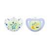 NUK Soothers have an orthodontic shape that promotes healthy oral development. This Soother features a Night & Day design.