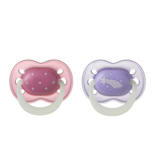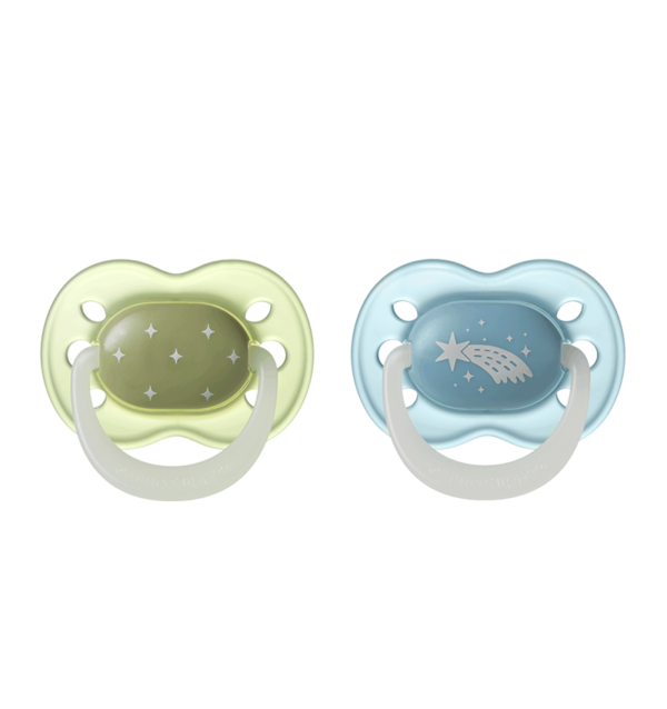 The Tommee Tippee NightGlow Soother is a glow‑in‑the‑dark pacifier designed to make bedtime simpler for you and more comforting for your baby. When charged in daylight, its handle glows gently throughout the night*, making it easier to find in the dark without disturbing your little one’s sleep. With a symmetrical shield and orthodontic silicone teat, this soother is gentle on developing teeth and gums, and extra air holes help improve airflow and reduce moisture build‑up for sensitive skin. Perfect for newborns and early months of soothing.