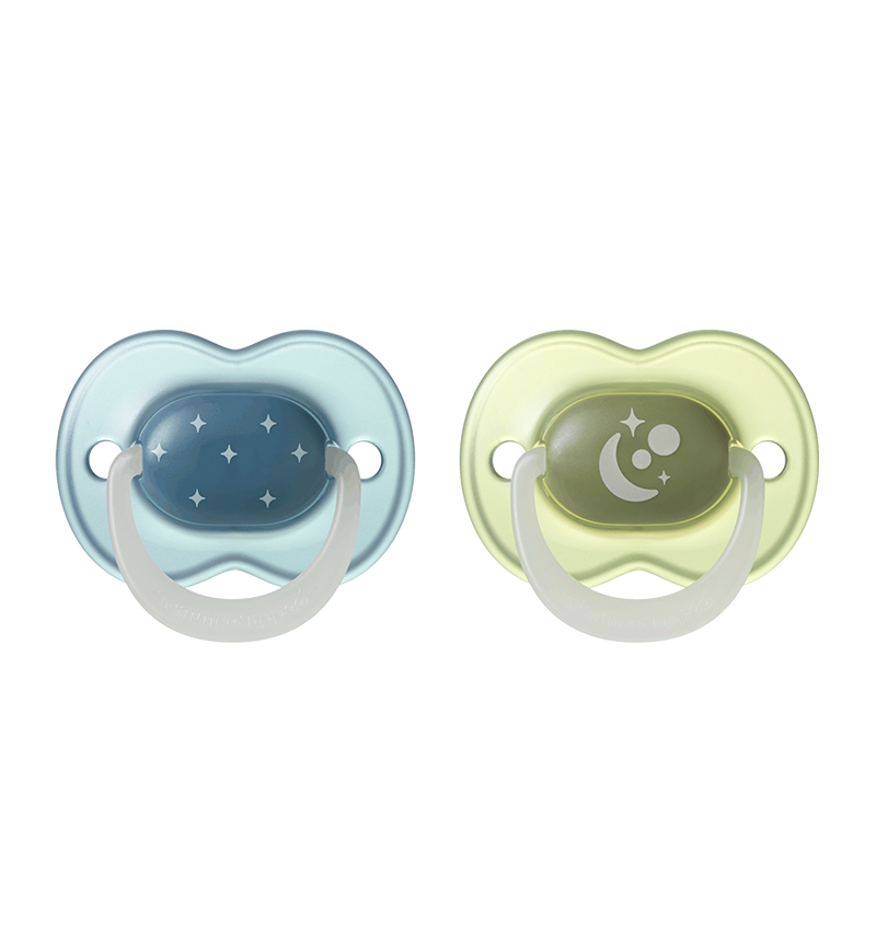 The Tommee Tippee NightGlow Soother is a glow‑in‑the‑dark pacifier designed to make bedtime simpler for you and more comforting for your baby. When charged in daylight, its handle glows gently throughout the night*, making it easier to find in the dark without disturbing your little one’s sleep. With a symmetrical shield and orthodontic silicone teat, this soother is gentle on developing teeth and gums, and extra air holes help improve airflow and reduce moisture build‑up for sensitive skin. Perfect for newborns and early months of soothing.