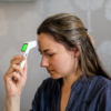 • Fever alert: If a high temperature is detected, the thermometer will sound an audible alarm and the light will turn red to warn of a potential fever. A green light indicates a normal temperature