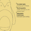 • No batteries needed – portable light recharges on its Penguin base which is powered by a USB cable.
