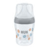 Thanks to the soft and elastic material, the teat gently hugs the baby’s lips and palate. The flowing shape of the teat gives the bottle an anti-colic function and ensures a calm and natural drinking flow. If the food is too hot, the normaly blue indicator will turn white.
