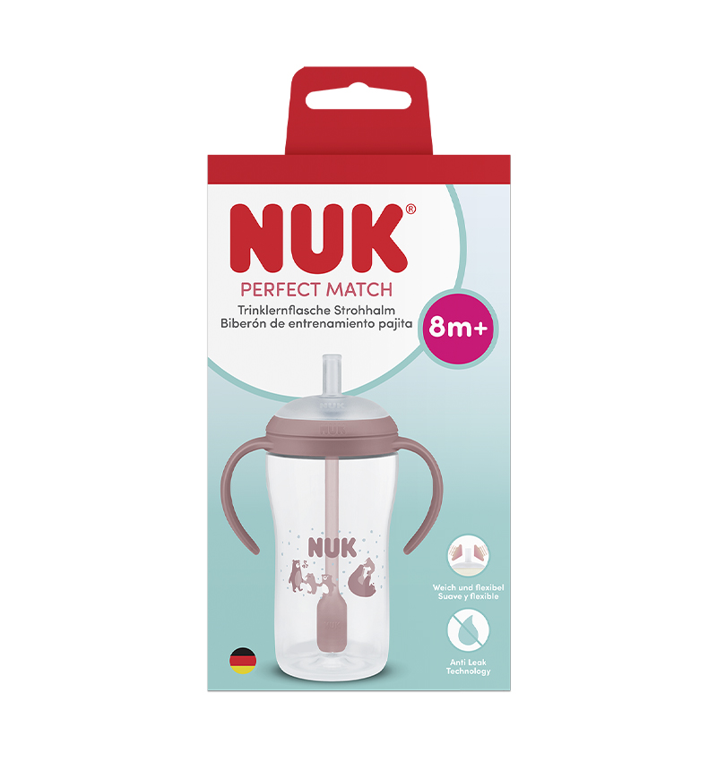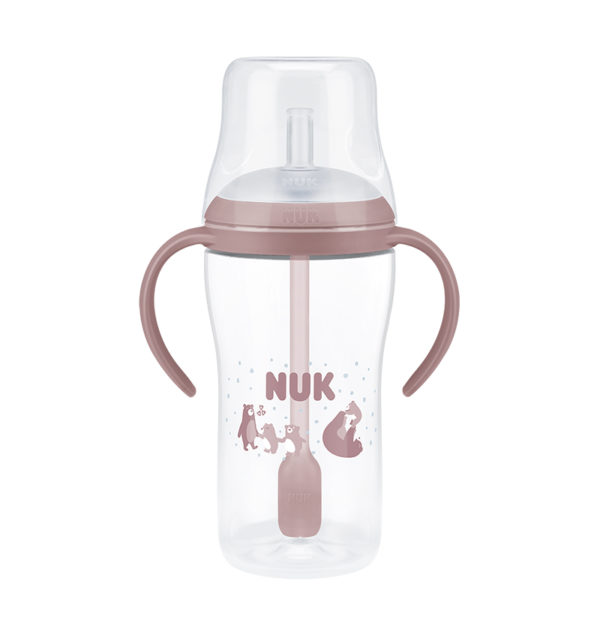 The NUK Perfect Match Learner Bottle can hold up to 260ml and comes with NUK ergonomic handles.