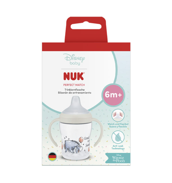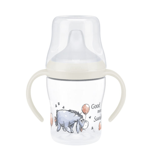 The NUK Perfect Match Learner Bottle can hold up to 150ml and comes with NUK ergonomic handles.