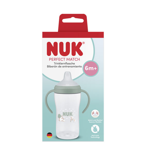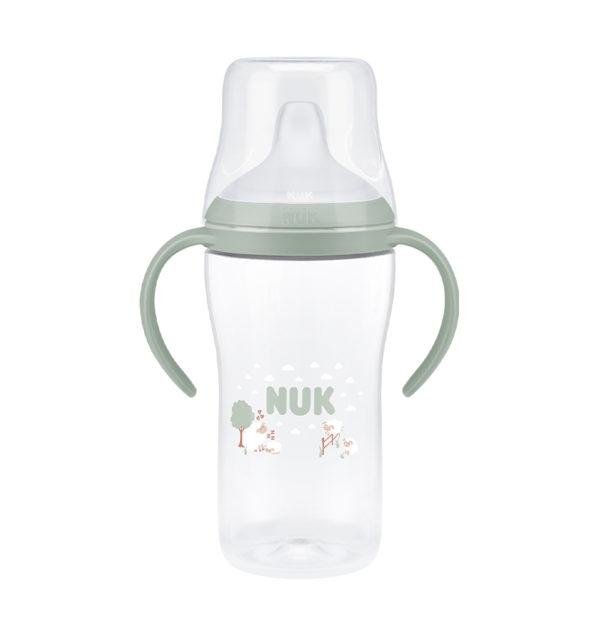 The NUK Perfect Match Learner Bottle can hold up to 260ml and comes with NUK ergonomic handles.